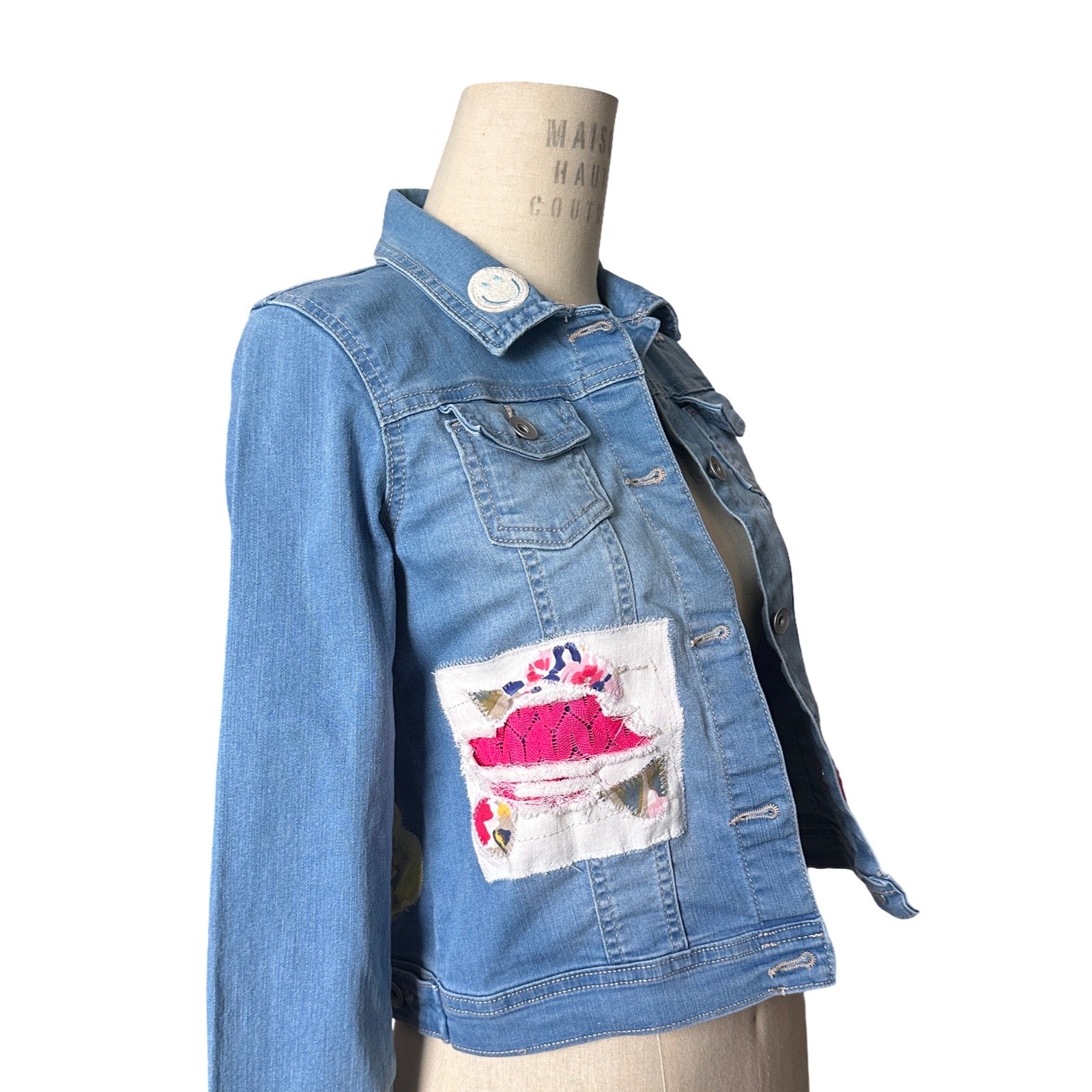 Embrace effortless style with this versatile denim jacket that seamlessly blends vintage charm with contemporary edge. Featuring artistic patches, delicate floral accents, and strategically placed rips, it captures that coveted bohemian-meets-grunge aesthetic. Crafted from lightweight denim, it's the perfect layering piece for any season—throw it over a tee, a tank, or a lightweight sweater to instantly elevate your look. Whether you're channeling retro vibes or modern cool, this jacket adapts to your personal style and becomes an instant wardrobe essential.