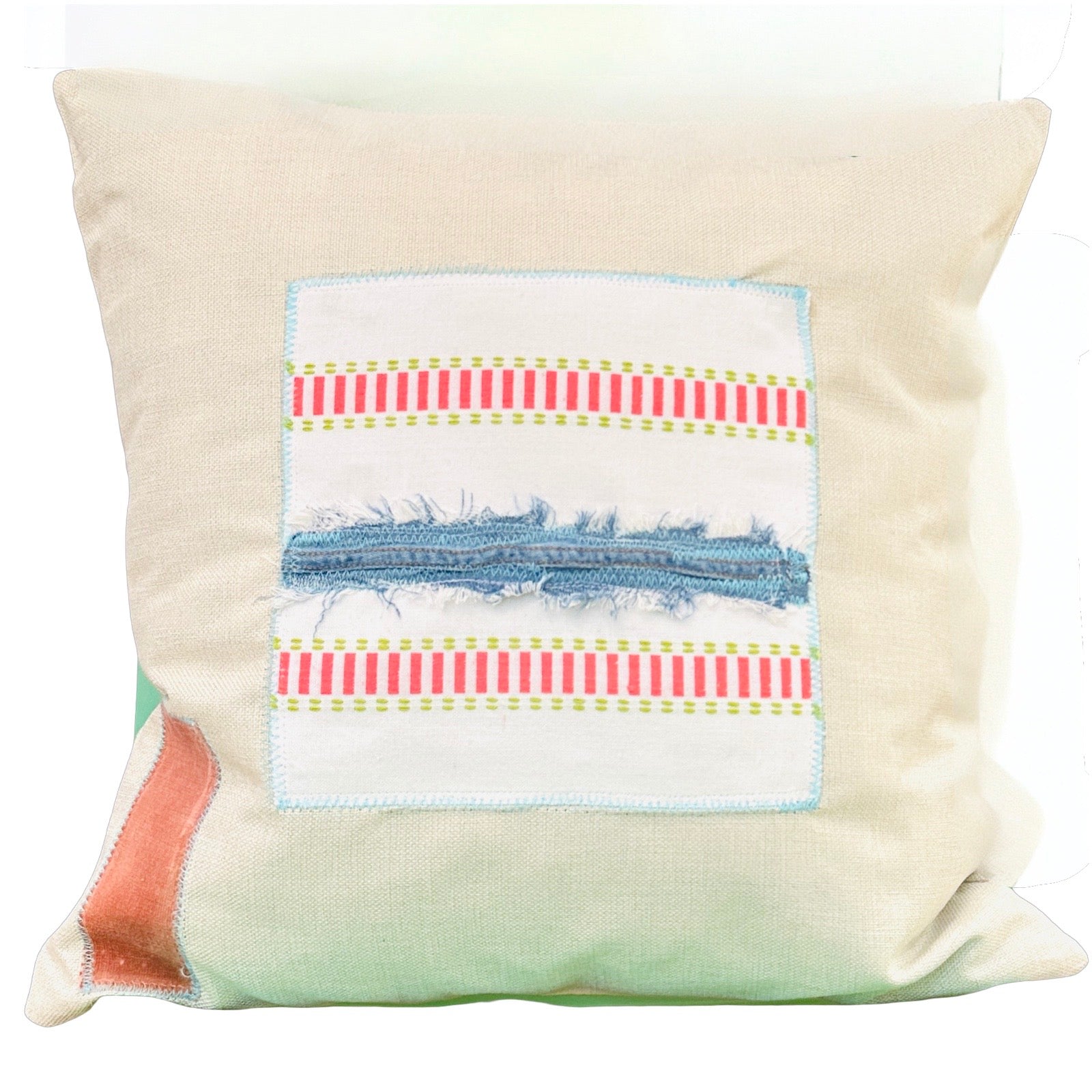 Hand stitched upcycled 18 x 18 linen blend decorative cushion covers with zipper. Available with or without cushion form.